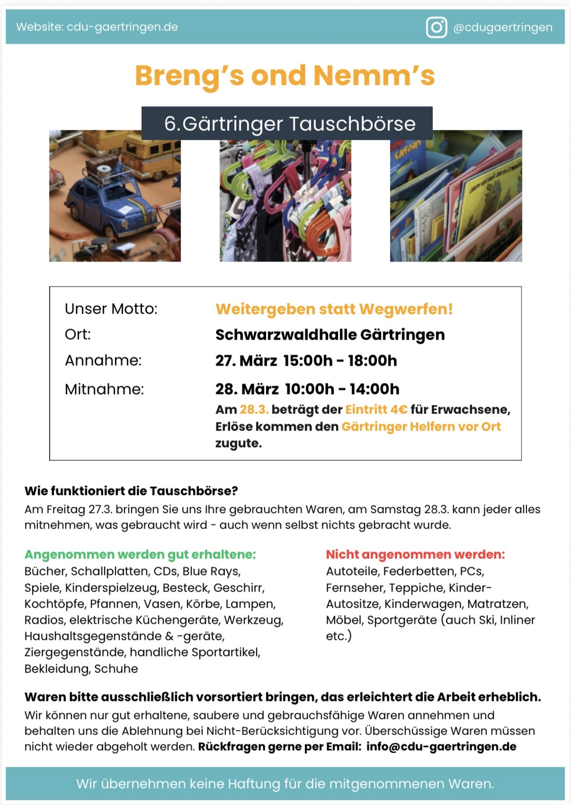 Breng´s ond Nemm´s am 27./28. März in der Schwarzwaldhalle